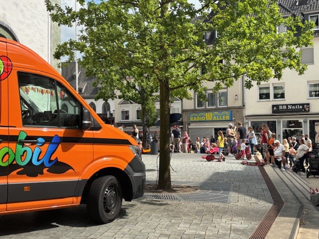 Das Spielmobil auf dem Spielplatz an der Finnentroper Straße