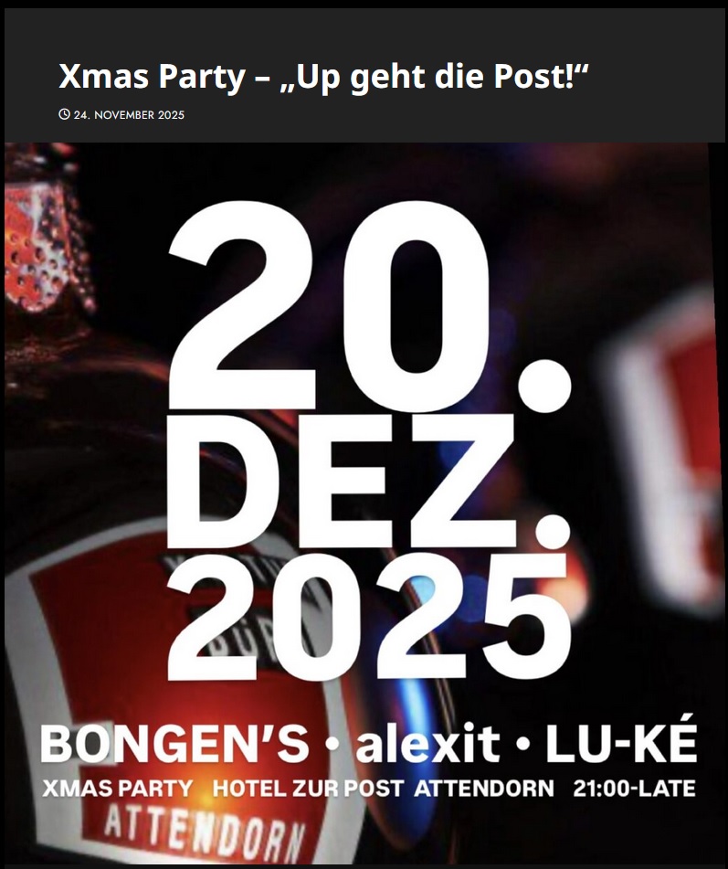 Die Fußball AG findet ab sofort nicht mehr mittwochs sondern donnerstags statt. Start ist um 20.00 Uhr, Schluss um 22.00 Uhr. Auch der Veranstaltungsort ändert sich: statt in der Hansehalle wird zukünftig in der Rundturnhalle gegenüber der Hanseschule an der Wiesbadener Straße trainiert.